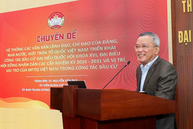 “Ban Thường trực cũng đã chỉ đạo xây dựng Sổ tay bầu cử và sẽ phát hành trong tháng 11/2025 và chuyển lên mục Sổ tay bầu cử điện tử trên Cổng Mặt trận trận số. Cùng với đó, Ủy ban Trung ương MTTQ Việt Nam đã xây dựng và vận hành chuyên trang thông tin bầu cử trên “Cổng mặt trận số” để tuyên truyền, phổ biến công tác bầu cử; tiếp nhận phản ánh, kiến nghị của của cử tri, Nhân dân về bầu cử; kết nối hệ thống MTTQ Việt Nam các cấp trong hướng dẫn, giải đáp các vướng mắc, khó khăn, trao đổi nghiệp vụ công tác bầu cử, tiếp nhận các văn bản chỉ đạo, hướng dẫn và hệ thống báo cáo trong công tác bầu cử”, Phó Chủ tịch Hoàng Công Thủy thông tin và đề nghị đề nghị cán bộ Mặt trận các cấp tham gia tập huấn với tinh thần trách nhiệm cao, tập trung nghiên cứu tài liệu, chủ động trao đổi những vấn đề chưa rõ, những khó khăn, vướng mắc cần tháo gỡ và chia sẻ kinh nghiệm thực tiễn ở địa phương, cơ sở. Báo cáo viên vừa hướng dẫn quy định, vừa chia sẻ kinh nghiệm, vừa nêu các tình huống và cách thức giải quyết tình huống có thể phát sinh, giải đáp khó khăn, vướng mắc của đại biểu phản ánh từ địa phương. Từ đó thống nhất trong cách làm, tạo sự đồng bộ, thống nhất, rõ ràng trong toàn hệ thống. Những nội dung được quán triệt, hướng dẫn tại hội nghị hôm nay sẽ là cơ sở quan trọng để chúng ta chuẩn bị thật tốt cho cuộc bầu cử sắp tới.