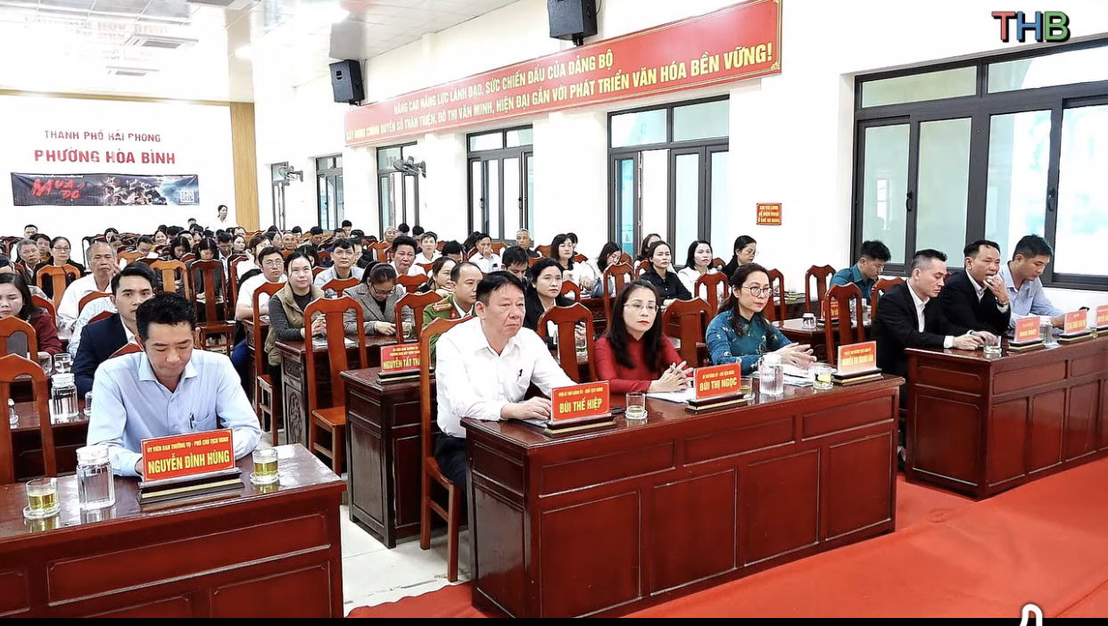 Sáng ngày 2/12, Đảng ủy phường Hòa Bình tổ chức Lễ công bố Quyết định thành lập Chi bộ mới, trao tặng máy vi tính – máy in đợt 2 và triển khai một số nhiệm vụ trọng tâm năm 2025. dự buổi lẽ có lãnh đạo văn phòng , ban nội chính thành ủy, lãnh đạo ngân hàng Nông nghiệp và phát triển nông thôn chi nhánh bắc hải phòng và chi nhánh thủy nguyên . Đại biểu phường Hòa bình có đồng chí Bùi Thị Ngọc – Bí thư Đảng ủy, Chủ tịch HĐND phường; đồng chí Nguyễn Thị Thanh Vân – Phó Bí thư Thường trực Đảng ủy; đồng chí Bùi Thế Hiệp – Chủ tịch UBND phường, các đồng chí phó chủ tịch HĐND , UBND phường.