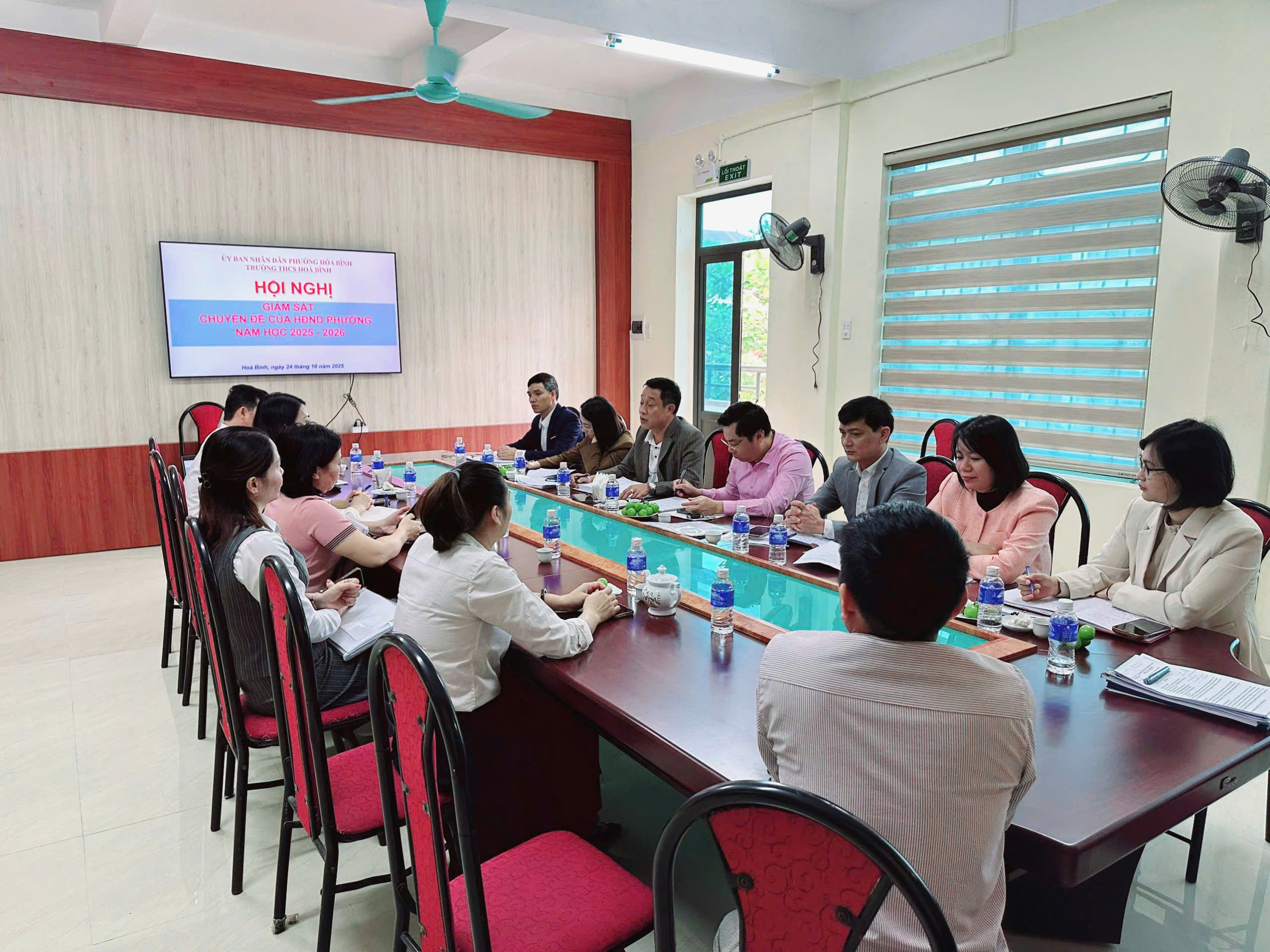 Tiếp tục chương trình giám sát công tác quản lý và hoạt động tại các trường học trên địa bàn, sáng ngày 24/10, Đoàn giám sát của Thường trực Hội đồng nhân dân (HĐND) phường do đồng chí Phùng Văn Mạnh – Phó Chủ tịch HĐND phường, Trưởng đoàn giám sát làm trưởng đoàn đã tiến hành giám sát tại Trường THCS Hòa Bình.
