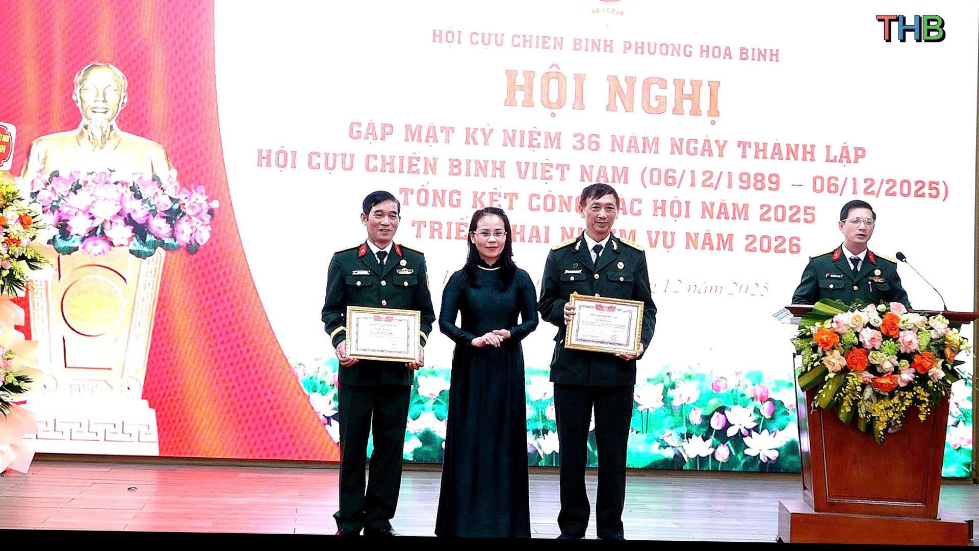 Nhân dịp này, Hội Cựu Chiến binh thành phố đã tặng Bằng khen cho Hội Cựu Chiến binh phường Hòa Bình, Chi hội CCB TDP Lương Đường và cá nhân đồng chí Bùi Quang Trung – Chủ tịch Hội CCB phường vì đã có thành tích xuất sắc trong phong trào thi đua “Cựu chiến binh gương mẫu” năm 2025. Hội CCB phường cũng tặng giấy khen cho 7 tập thể và 16 cá nhân đã có thành tích hoàn thành xuất sắc nhiệm vụ trong công tác Hội năm 2025.