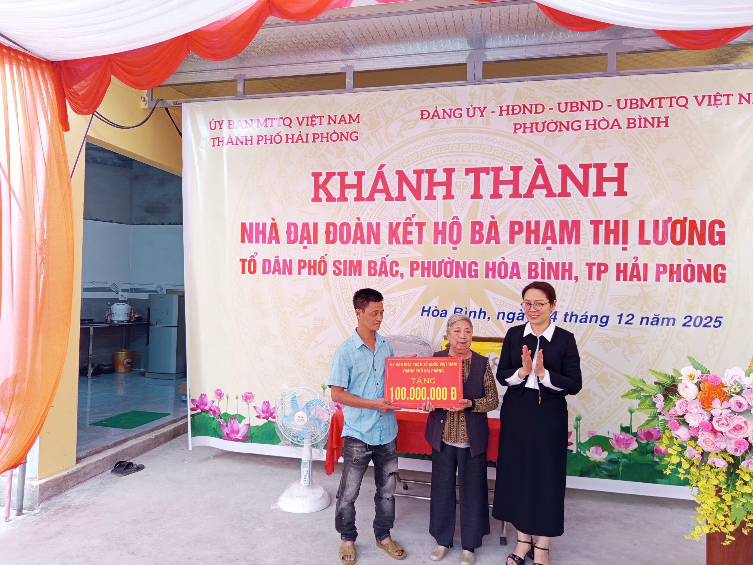 Chiều ngày 4/12, Ủy ban Mặt trận Tổ quốc Việt Nam phường Hòa Bình tổ chức Lễ khánh thành và bàn giao Nhà Đại đoàn kết cho gia đình bà Phạm Thị Lương, thuộc TDP Sim Bấc, phường Hòa Bình.