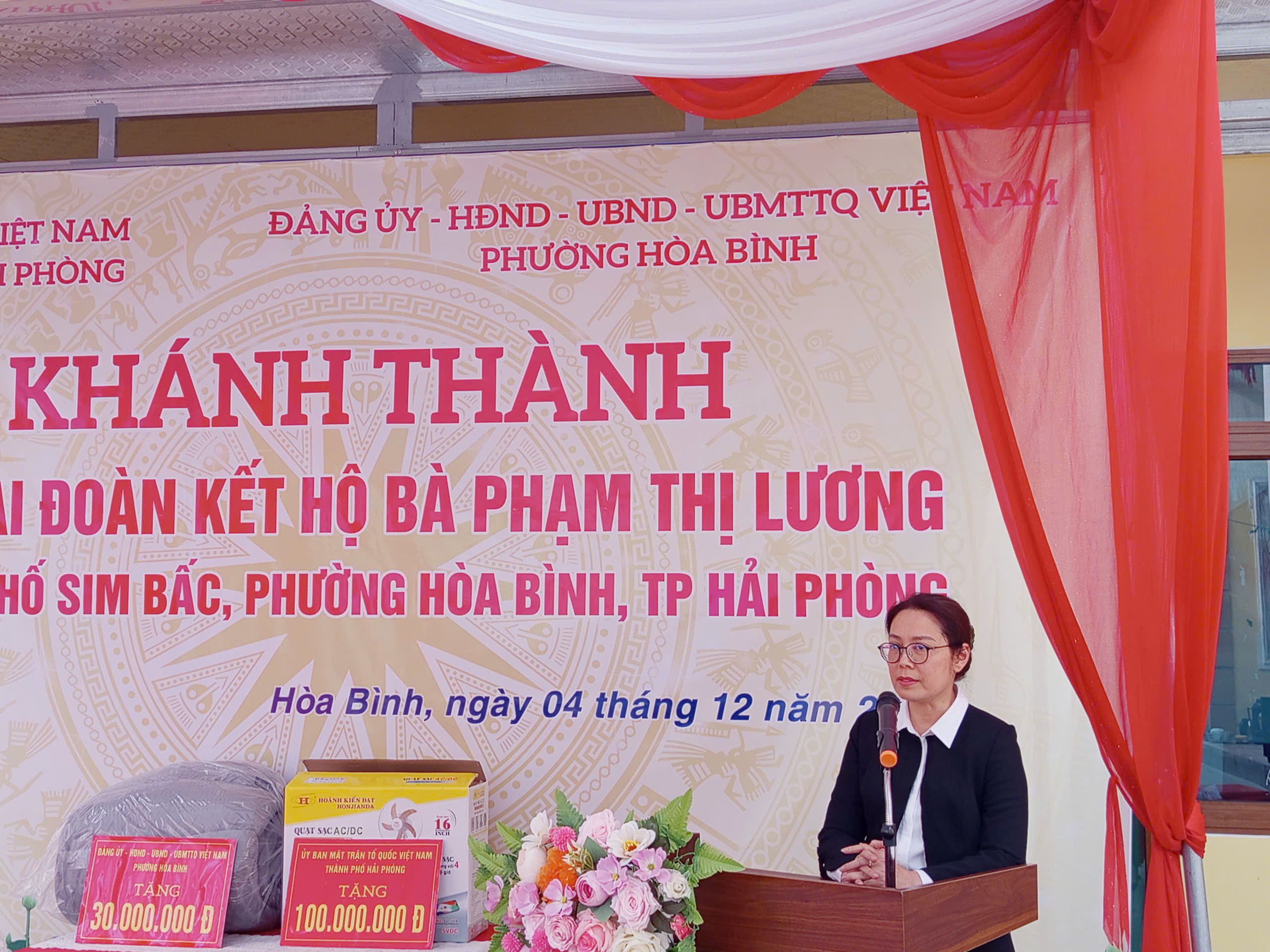 Lễ khánh thành và bàn giao Nhà Đại đoàn kết cho gia đình bà Phạm Thị Lương, thuộc TDP Sim Bấc, phường Hòa Bình.