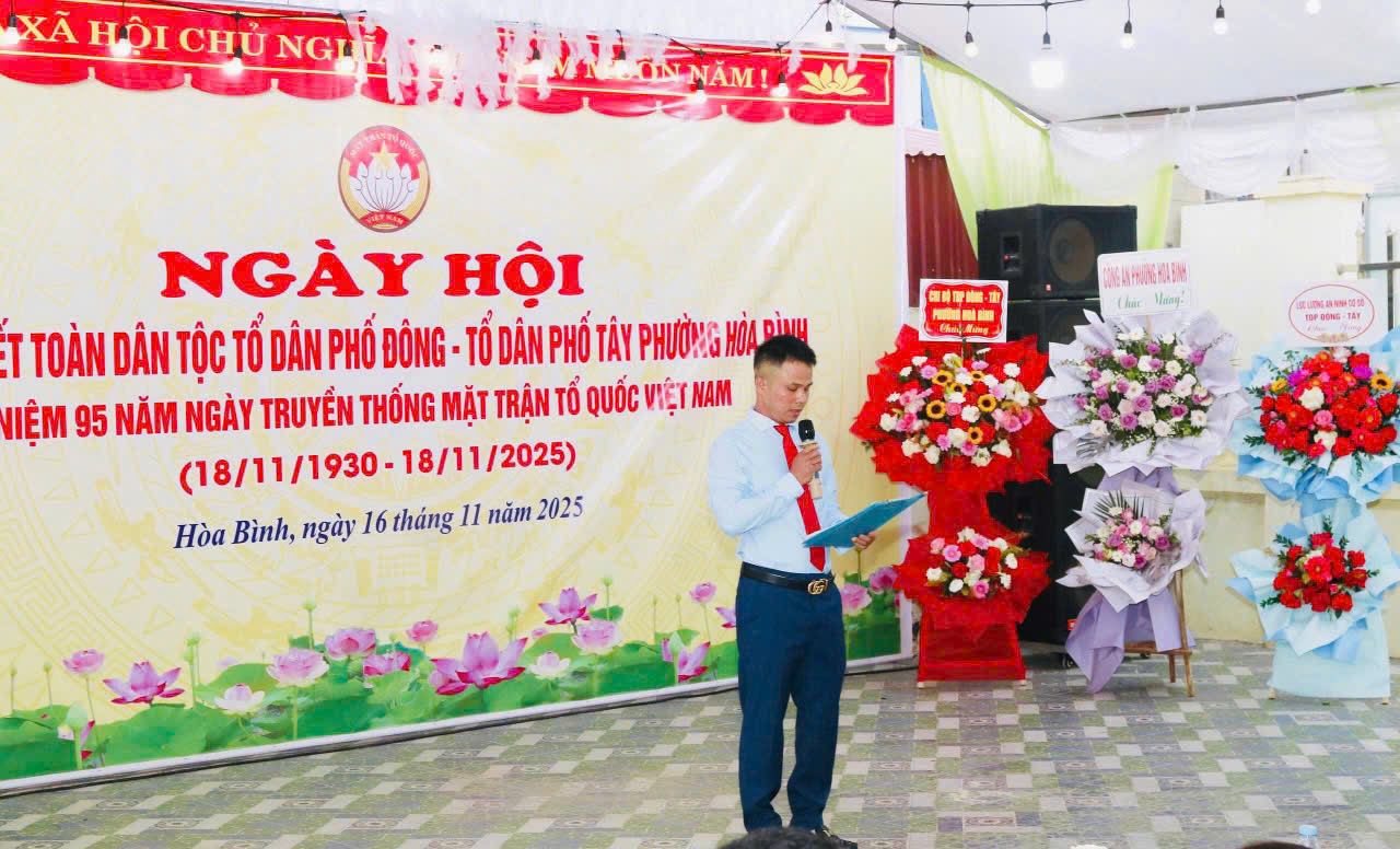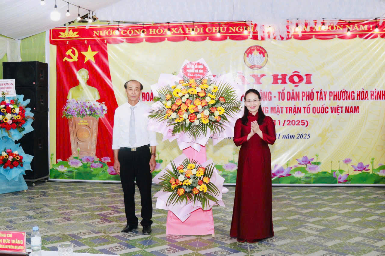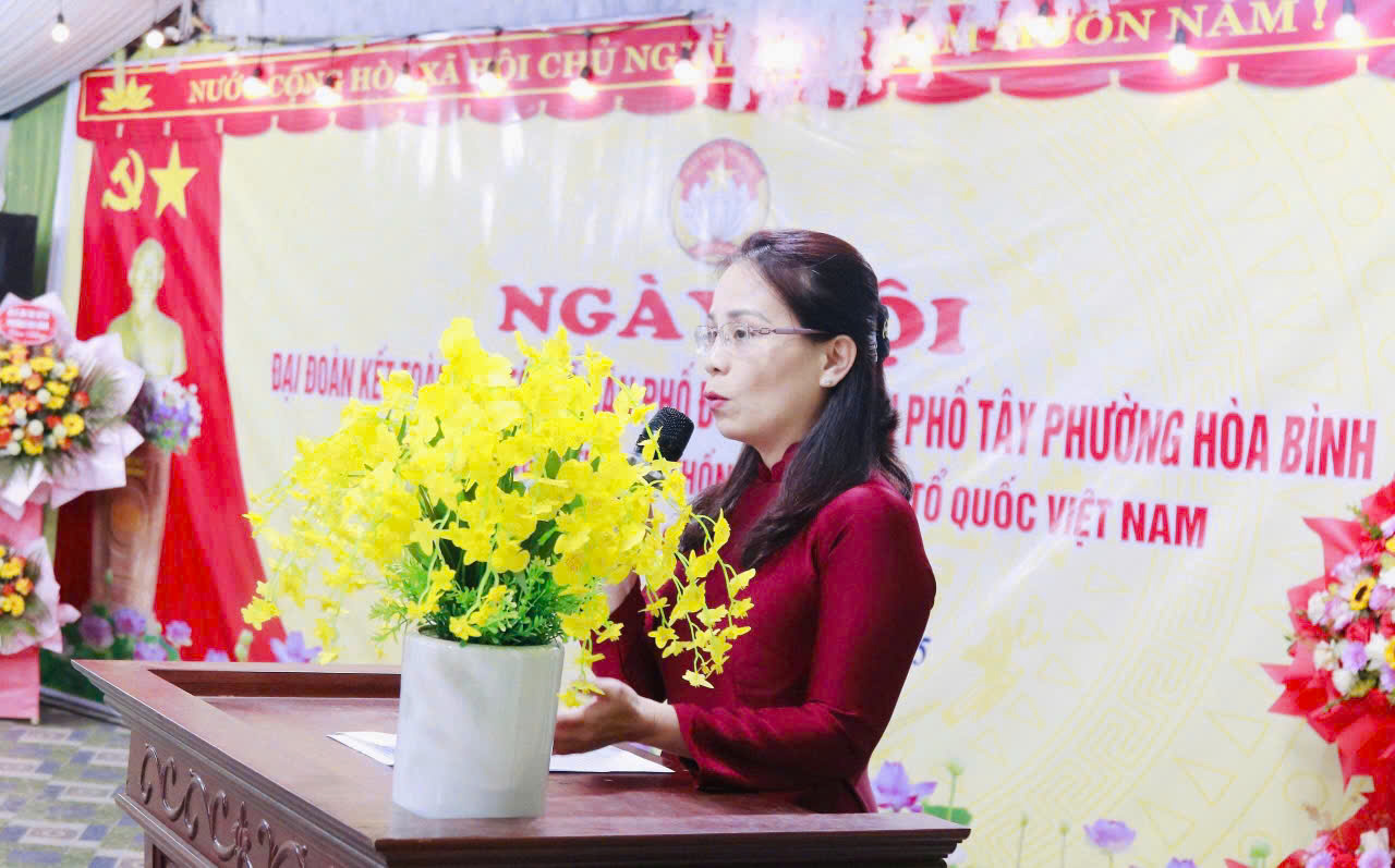Tối ngày 16/11, đồng chí Bùi Thị Ngọc, Bí thư Đảng ủy, Chủ tịch HĐND phường, đã dự Ngày hội Đại đoàn kết toàn dân tộc tại tổ dân phố Đông và tổ dân phố Tây, phường Hòa Bình.