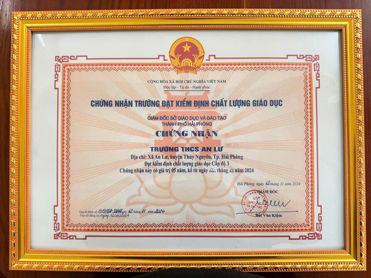 Nhờ sự nỗ lực không ngừng, trong những năm học vừa qua, trường THCS An Lư luôn đoàn kết, thống nhất, gương mẫu hoàn thành xuất sắc các nhiệm vụ được giao. Niềm vui lớn của thầy và trò trong năm học 2024 – 2025 là trường được nhận Cờ thi đua của UBND thành phố – “Đơn vị dẫn đầu thi đua khối THCS”; Công đoàn nhà trường được tặng Cờ thi đua của Liên đoàn Lao động thành phố Hải Phòng – “Công đoàn cơ sở hoàn thành xuất sắc nhiệm vụ năm học 2024 – 2025”; đồng chí Trần Thị Hoài vinh dự được nhận Bằng khen của UBND thành phố.