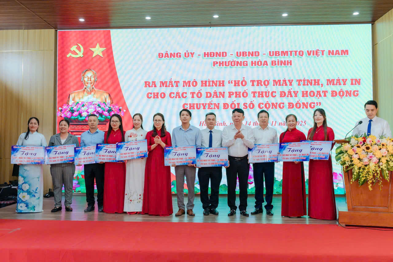 Cũng tại buổi lễ, Đảng ủy phường Hòa Bình đã tổ chức ra mắt mô hình hỗ trợ máy tính, máy in cho các Tổ dân phố nhằm thúc đẩy hoạt động chuyển đổi số cộng đồng.