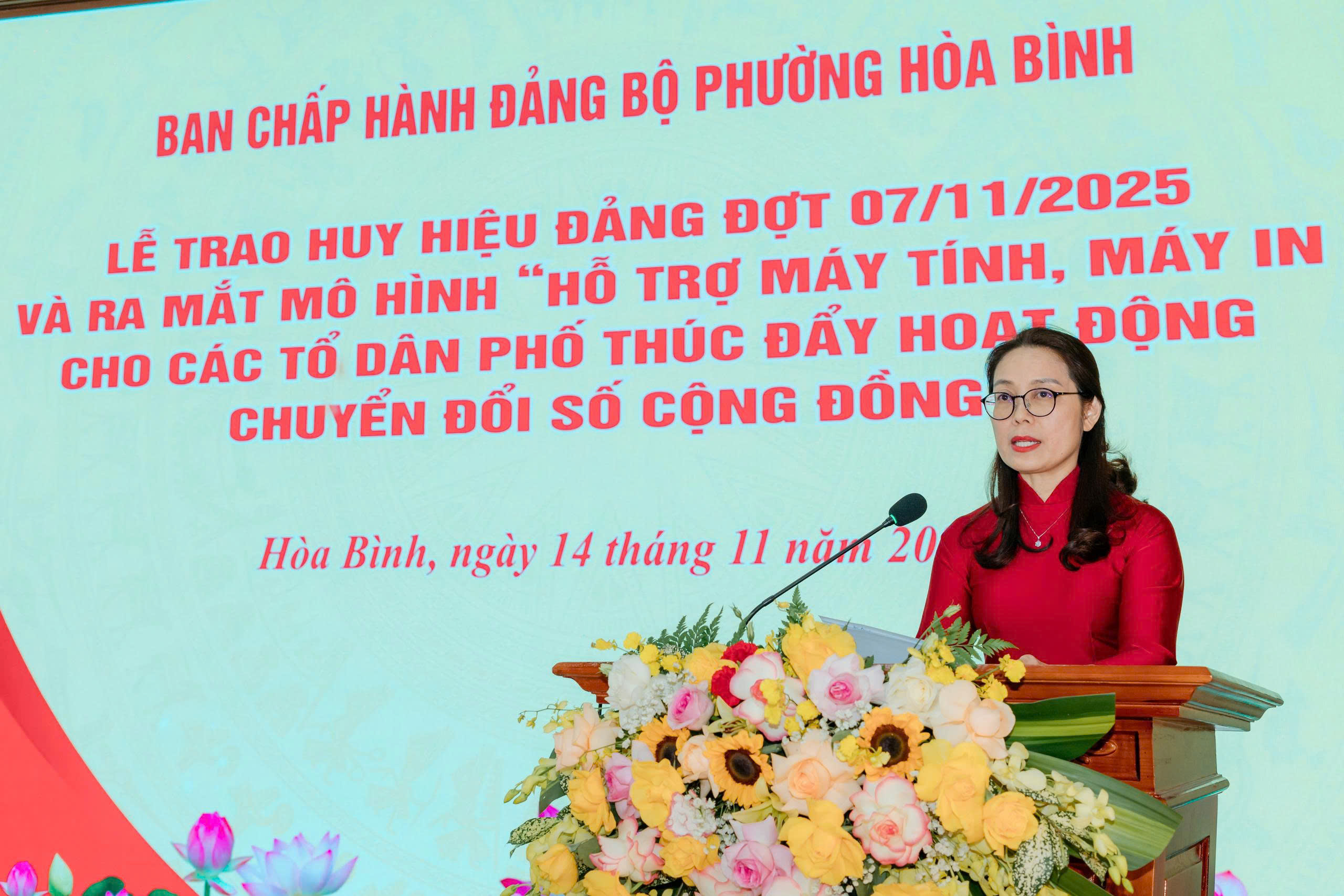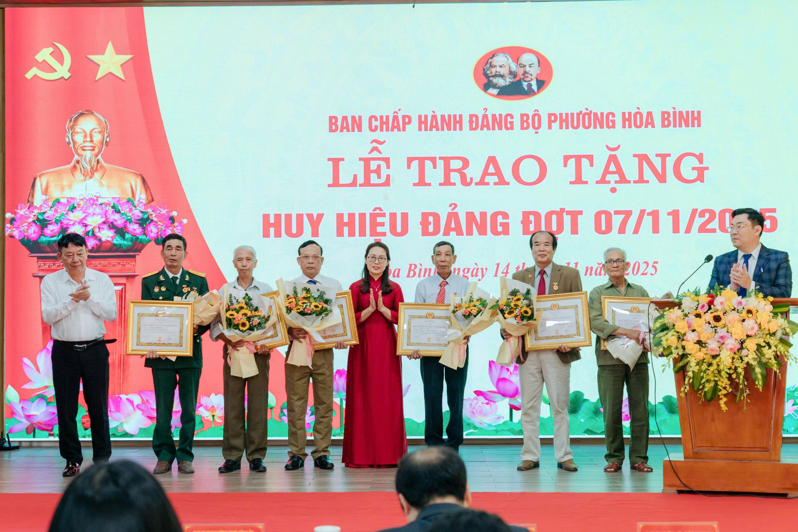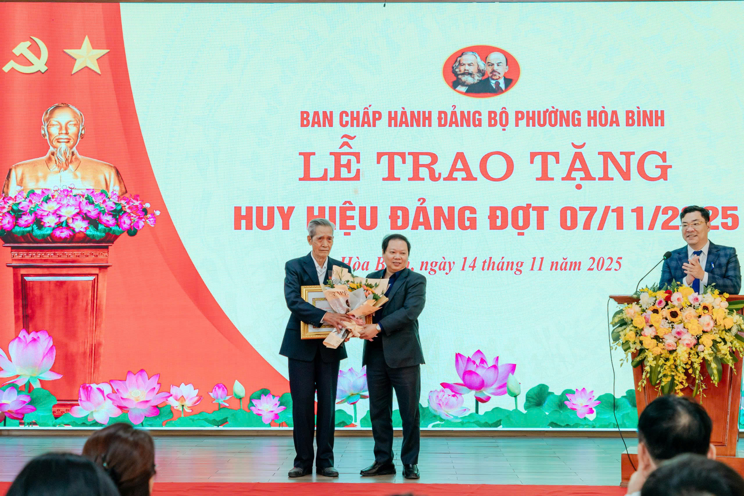 Sáng ngày 14/11/2025, Đảng ủy Phường Hòa Bình tổ chức Lễ trao tặng Huy hiệu Đảng đợt 7/11/2025 cho các đảng viên thuộc Đảng bộ phường và ra mắt mô hình hỗ trợ máy tính, máy in cho các tổ dân phố nhằm thúc đẩy hoạt động chuyển đổi số cộng đồng.