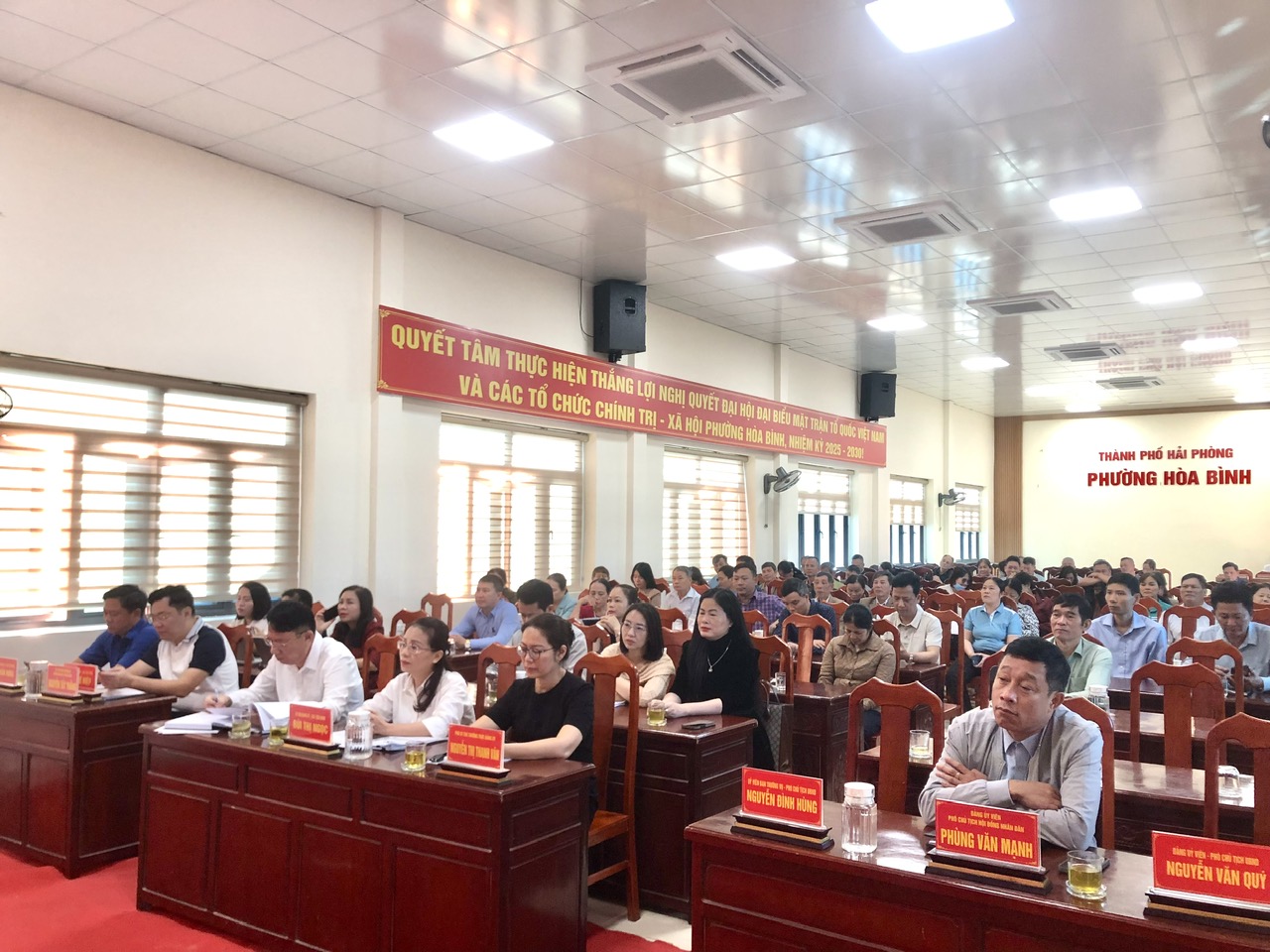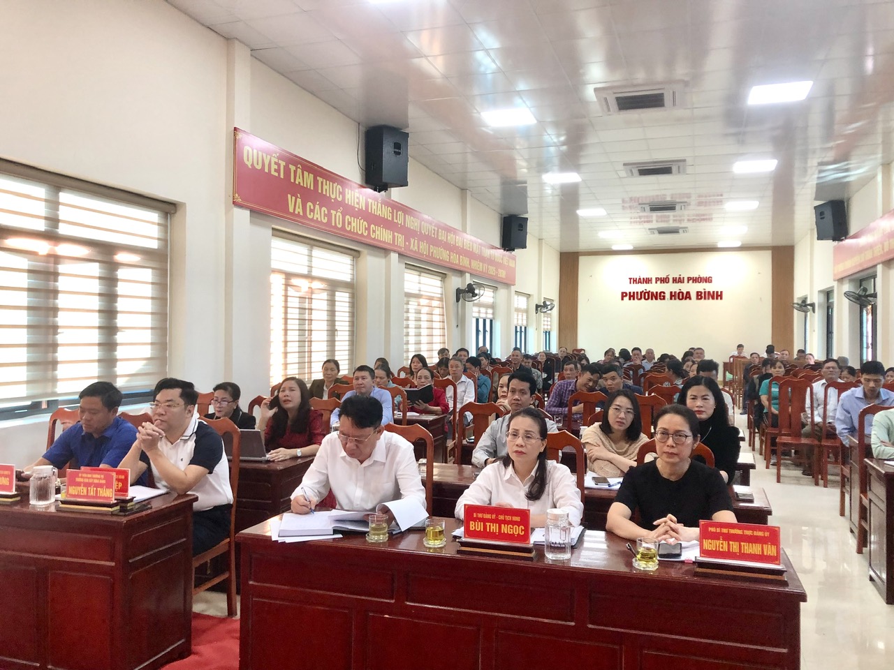 Dự tại điểm cầu phường Hoà Bình có đồng chí Bùi Thị Ngọc Bí thư Đảng ủy chủ tịch HĐND phường, đồng chí Nguyễn Thị Thanh Vân phó bí thư TT đảng uỷ , đồng chí Bùi Thế Hiệp phó bí thư đảng ủy chủ tịch UBND phường , các Đồng chí Phó Chủ tịch HĐND, UBND phường; - Các đồng chí Ủy viên Ban Thường vụ Đảng ủy, Ủy viên Ban Chấp hành Đảng ủy phường; - Các đồng chí Trưởng, Phó các cơ quan: Ban Xây dựng Đảng, Ủy ban Kiểm tra Đảng ủy; Văn phòng Đảng ủy; lãnh đạo Ủy ban Mặt trận Tổ quốc Việt Nam phường và các đồng chí Trưởng, Phó các Tổ chức chính trị - xã hội phường cùng Các đồng chí: Bí thư chi bộ, Tổ trưởng Tổ dân phố, Trưởng ban công tác mặt trận trên địa bàn phường .