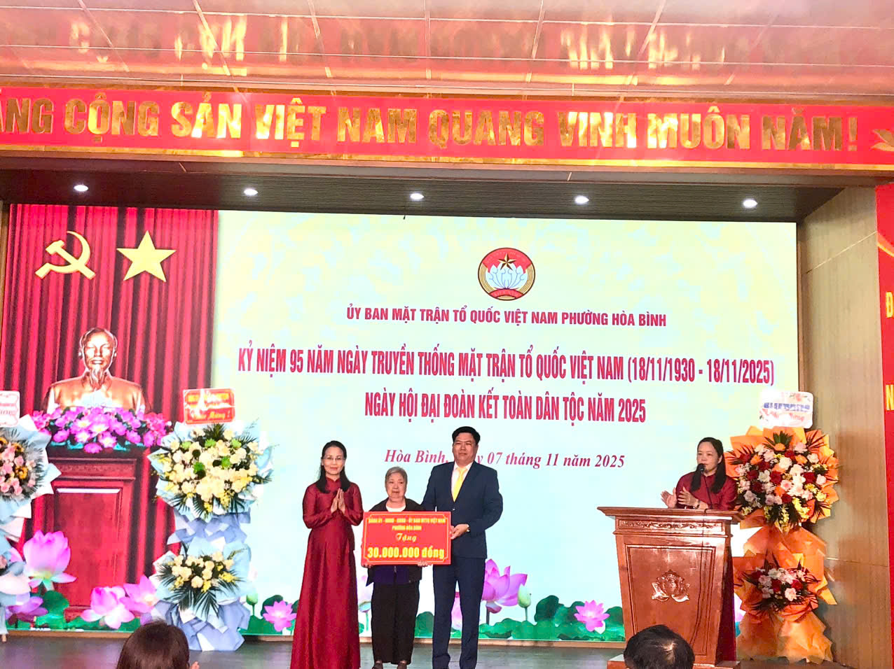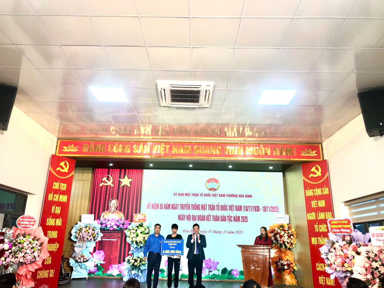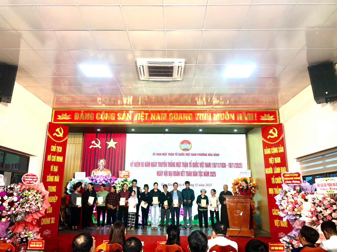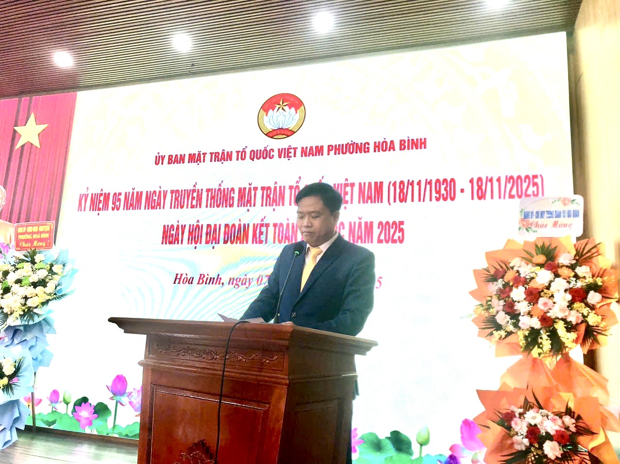 Chiều ngày 7/11, Ủy ban Mặt trận Tổ quốc Việt Nam phường Hòa Bình tổ chức Lễ kỷ niệm 95 năm Ngày thành lập Mặt trận Dân tộc Thống nhất Việt Nam (18/11/1930 – 18/11/2025) và Ngày hội Đại đoàn kết toàn dân tộc năm 2025.
