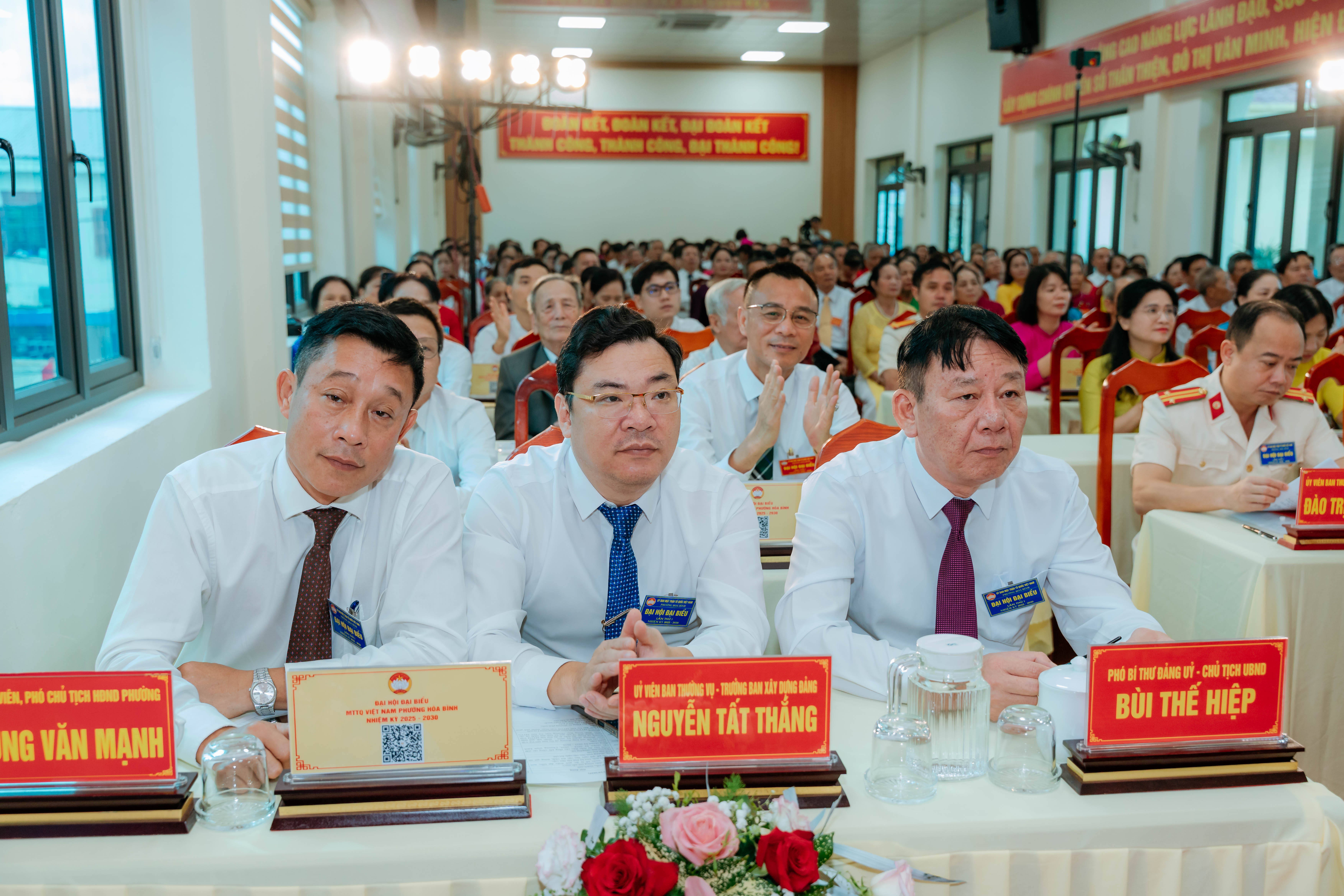 Phát biểu tại Đại hội, đồng chí Bùi Thị Ngọc – Bí thư Đảng ủy, Chủ tịch HĐND phường đã ghi nhận và biểu dương những kết quả, đóng góp tích cực của MTTQ và các tổ chức chính trị - xã hội phường Hòa Bình trong thời gian qua. Đồng chí đồng tình, đánh giá cao các nội dung trong Báo cáo chính trị và đề nghị Ủy ban MTTQ phường nhiệm kỳ mới tiếp tục phát huy những kết quả đạt được, không ngừng đổi mới, nâng cao chất lượng hoạt động, đóng góp tích cực vào sự phát triển chung của địa phương.