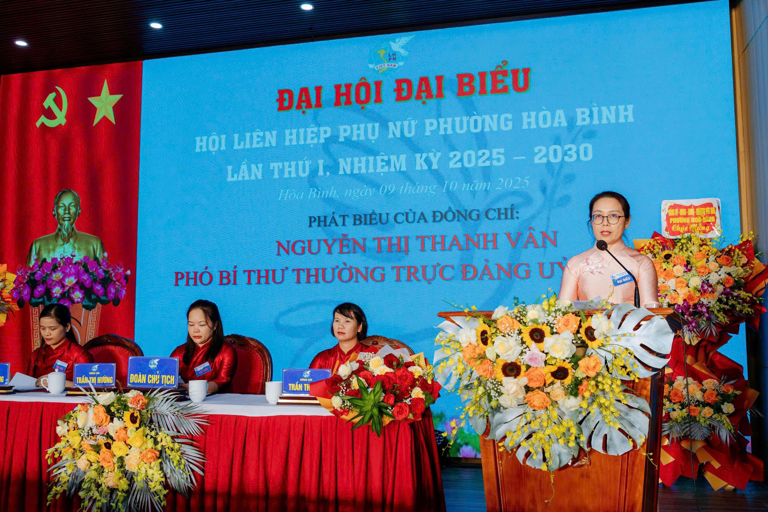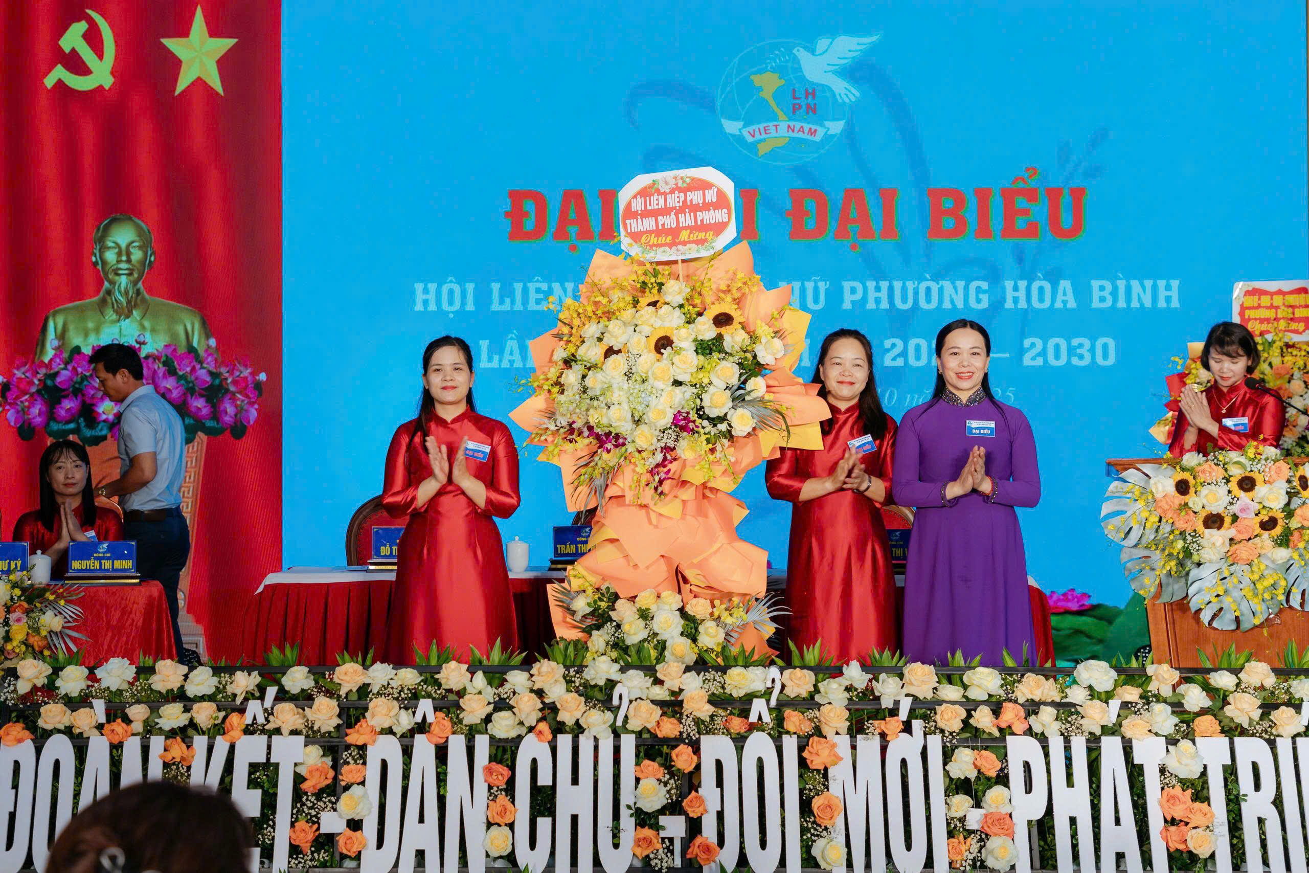 Phát biểu chỉ đạo tại Đại hội, đồng chí Phạm Thúy Hải – Phó Chủ tịch Hội LHPN thành phố Hải Phòng và đồng chí Nguyễn Thị Thanh Vân – Phó Bí thư Thường trực Đảng ủy phường, đã ghi nhận và biểu dương những kết quả tích cực của Hội LHPN phường Hòa Bình trong nhiệm kỳ qua, đặc biệt là sự thích ứng, đoàn kết, nỗ lực vượt qua khó khăn sau khi tổ chức bộ máy được sắp xếp.