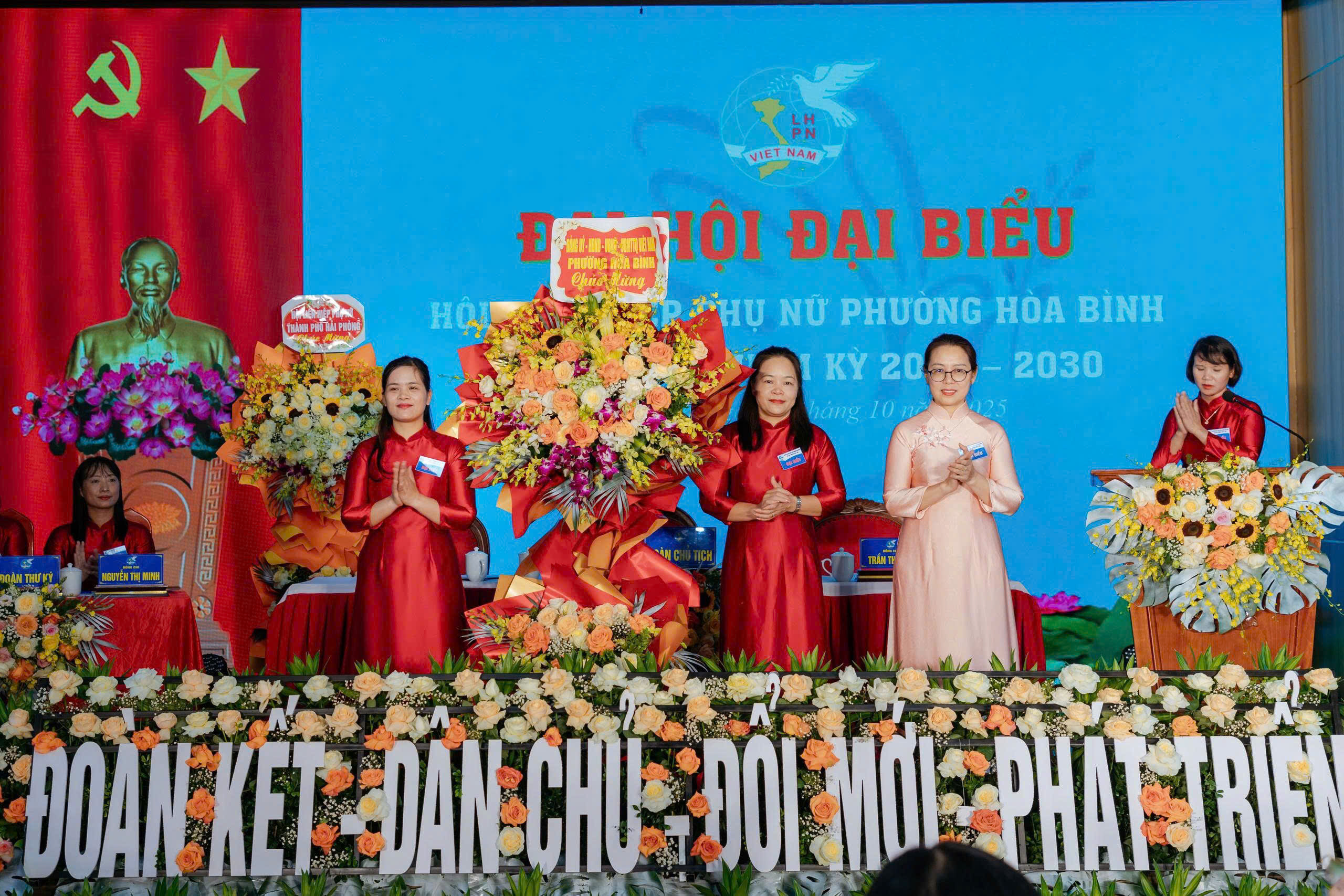 Nhân dịp này, Hội LHPN thành phố và Đảng ủy, chính quyền phường Hòa Bình đã tặng hoa chúc mừng Đại hội.