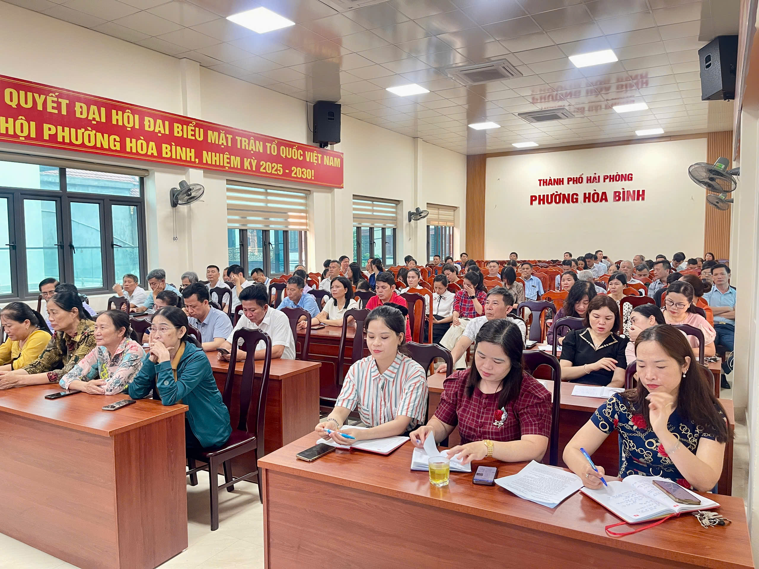 Sáng ngày 16/4, Đảng ủy phường Hòa Bình tổ chức Hội nghị quán triệt Nghị quyết và các văn kiện Đại hội Đảng toàn quốc lần thứ XIV, Chương trình hành động số 17-CTr/TU của Thành ủy Hải Phòng thực hiện Nghị quyết; Chuyên đề Học tập và làm theo tư tưởng, đạo đức, phong cách Hồ Chí Minh năm 2026; Đề án, Nghị quyết của Ban Chấp hành đảng bộ Thành phố về chủ nghĩa xã hội gắn với con người xã hội chủ nghĩa. Dự và trực tiếp truyền đạt tại Hội nghị có đồng chí Nguyễn Văn Hiểu - Phó Trưởng ban, Ban Tuyên giáo và Dân vận Thành ủy.