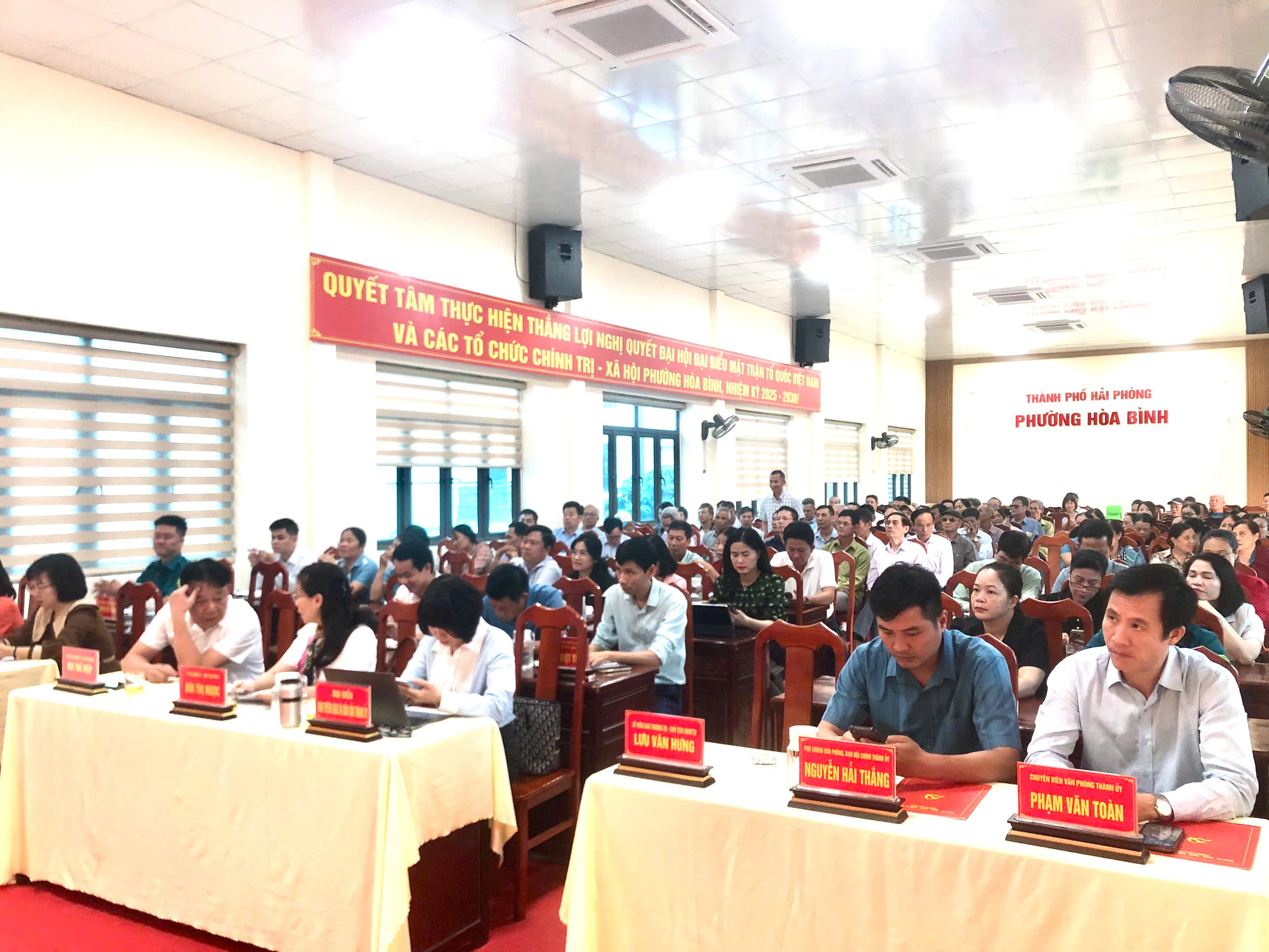 Đồng chí Trần Thị Ngoan – Trưởng phòng Đoàn thể và các Hội, Ban Tuyên giáo và Dân vận Thành ủy;Cùng các đồng chí Phó Chánh Văn phòng Ủy ban Kiểm tra Thành ủy, Ban Nội chính Thành ủy.Đại biểu phường Hoà Bình có