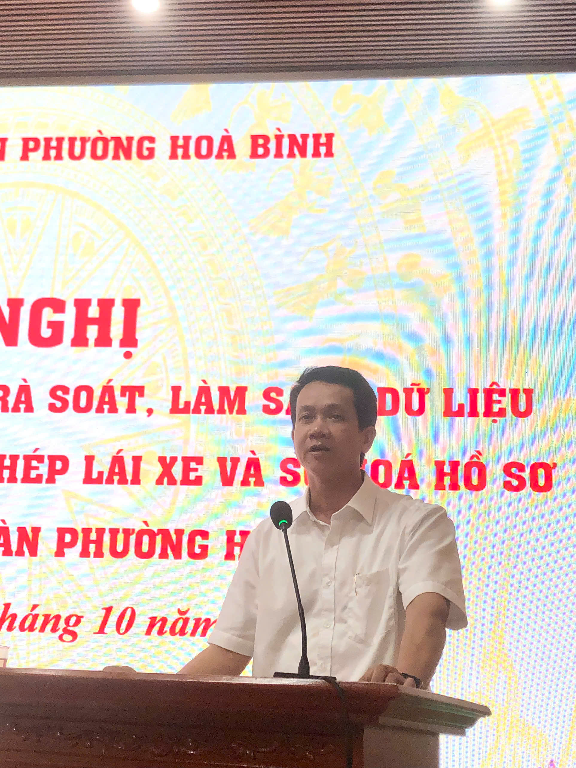 Chiều ngày 29/10, Ủy ban nhân dân phường Hòa Bình tổ chức Hội nghị triển khai Kế hoạch tổng rà soát, làm sạch dữ liệu đăng ký phương tiện, Giấy phép lái xe và số hóa hồ sơ đăng ký xe trên địa bàn phường.