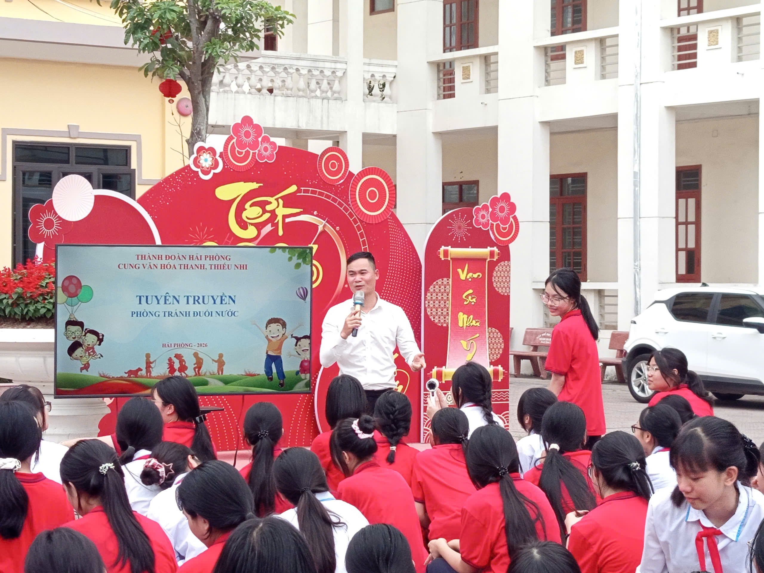 Bên cạnh đó các em học sinh còn được trang bị kiến thức và kỹ năng phòng chống đuối nước - một trong những nguy cơ tai nạn thường gia tăng vào dịp hè. Tuyên truyền viên Cung văn hoá thiếu nhi thành phố đã hướng dẫn các em cách nhận biết khu vực nguy hiểm, kỹ năng tự bảo vệ bản thân khi ở gần sông, ao, hồ; cách xử lý tình huống khi gặp người bị đuối nước, đồng thời nhấn mạnh tầm quan trọng của việc mặc áo phao khi tham gia các hoạt động dưới nước.