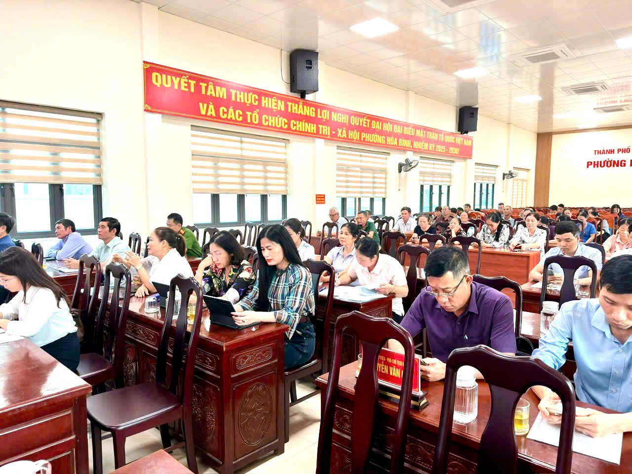 Chiều ngày 31/3, phường Hoà Bình tổ chức điểm cầu tiếp sóng Hội nghị trực tuyến toàn quốc tổng kết công tác bầu cử đại biểu Quốc hội khóa XVI và đại biểu HĐND các cấp nhiệm kỳ 2026-2031 do Trung ương tổ chức.